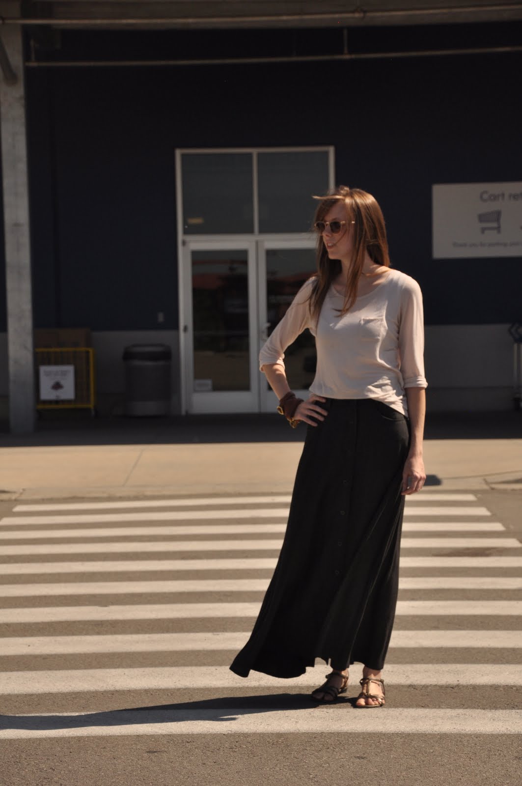 Ah, there's nothing more relaxed, yet elegant, than a flowing maxi skirt. Topshop has some lovely options right now that I think will flow quite seamlessly into Fall (so follow the link and scroll down...). We like our maxi skirts worn with our favorite loosely tucked t-shirts and flat sandals (until the weather gets cool...then you can layer sweaters, scarves and belts up over your long skirt and wear it with flat boots). When wearing the maxi length we suggest keeping the look casual and cool, and suggest staying away from pairing it with heels or anything too fussy. We like to wear our long skirts like we really didn't even think about our outfit...even though we maybe did.