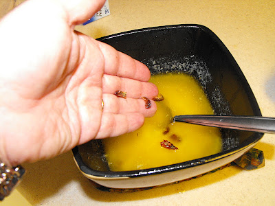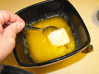 Put the pieces into the melted butter. (I found that it worked better to put them into the bowl with the sticks before you microwave the butter for about a minute. They got softer more rapidly).