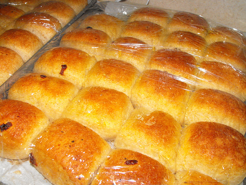 Here is the finished product. After they came out of the oven, I again sprayed them with the vegetable spray. After cooling off, I placed the plastic wrap back on them to keep them soft until I was ready to serve them.