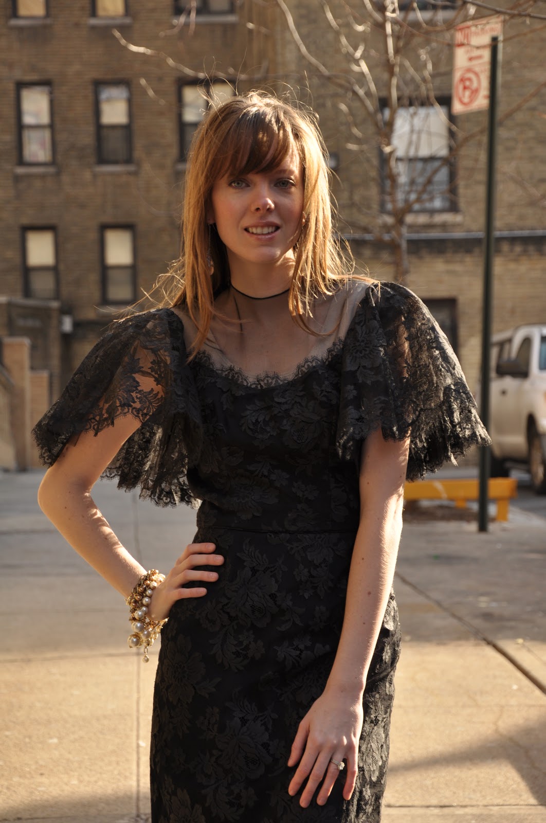 There was so much beautiful lace on the fall runways that we felt that the holiday season would not be complete without some lace on this blog. Seriously, you can see lace here at Marc Jacobs, Elie Tahari, and Elle magazine, to name a few. Sometimes the "little black dress" gets a bad wrap at party time for being a bit somber, so we'd like to make the case for the "little black lace dress". Lace is elegant yet tastefully extravagant (if there's such a thing) - you definitely know it is reserved for an evening out. Be warned though, black lace brings attention in a way that really nothing else can. Get ready to stop traffic in your LBLD. Dress vintage, heels Steve Madden.
