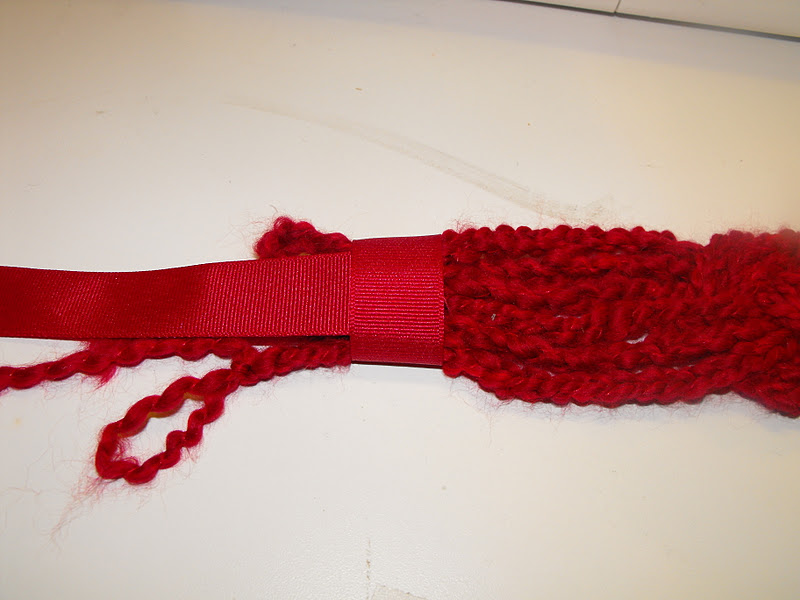 I then slipped the end of the long length of ribbon under the loop.