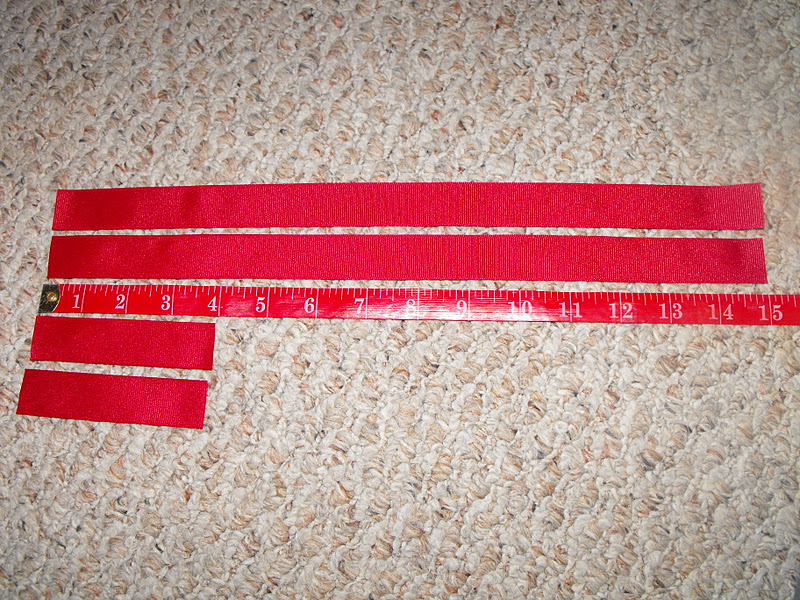 I used Grosgrain ribbon, but you could use Satin ribbon if you chose to. Cut two 15" lengths and two 4" lengths of your ribbon. Here is where I depart from the method proposed by "YouSeriously MadeThat".