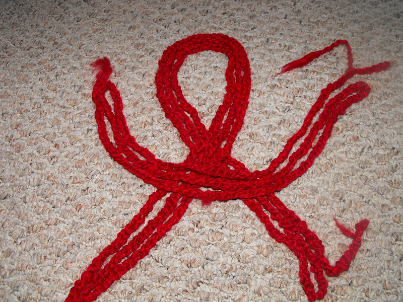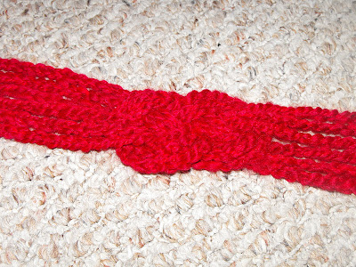 Believe it or not, I made this Knotted Crocheted Hairband in about 30 minutes. It was inspired by a post at "You Seriously Made That?". I wore it to church, and got compliments from the Young Single Adults. I was pleased and surprised. Also, I am not too proud to say that the pictures in the "You Seriously Made That?" blog tutorial are much better than mine. It is difficult to admit defeat, but in this case...you may want to follow her directions until you get to the section on attaching the ribbon.. I made an adjustment to this hairband, which I will show you later.
