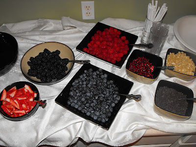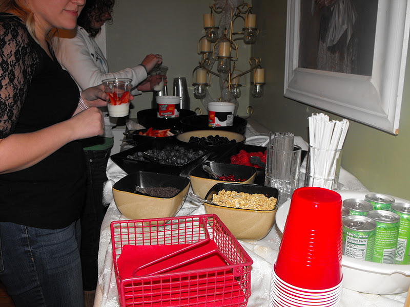 In addition to the Yogurt, you can set out a variety of toppings. I chose to put out black berries, raspberries, strawberries, and blue berries. Additionally, I set out granola, and mini chocolate chips. I even put a can of whip cream out. Each young lady created their own parfait. I think everyone had seconds! I used lemon and vanilla flavored yogurts for a variety.