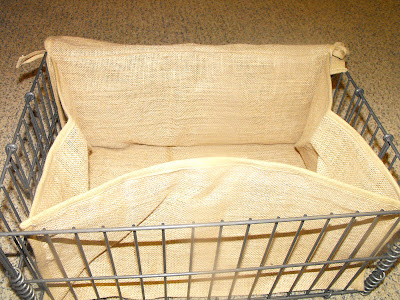 So, I sewed some left over Gross-grain ribbon to the front two corners and tied them to the front part of the basket.