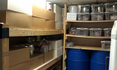 A few days ago, I blogged about my sister's kitchen organization. Well, her organizing skills also spill over into her long-term storage. Believe it or not....she is this organized all the time.