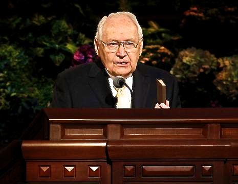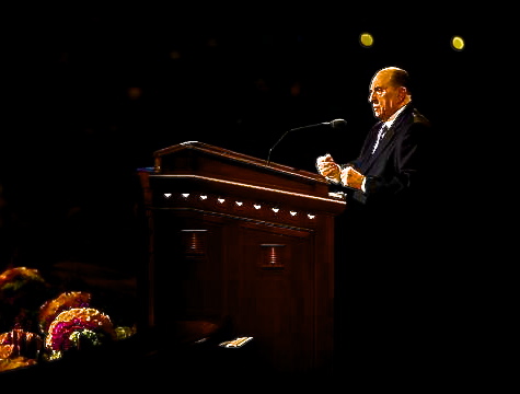 And suddenly, I realized that something in President Monson's tone was different.... (Mind you, the room is dark, as the media room is in the back of the Conference Center, and my head is looking down at either the transcript or at my computer screen.) First of all, no joke to begin, but this... an acknowledgement of his prophetic responsibility and privilege to address the children of God.