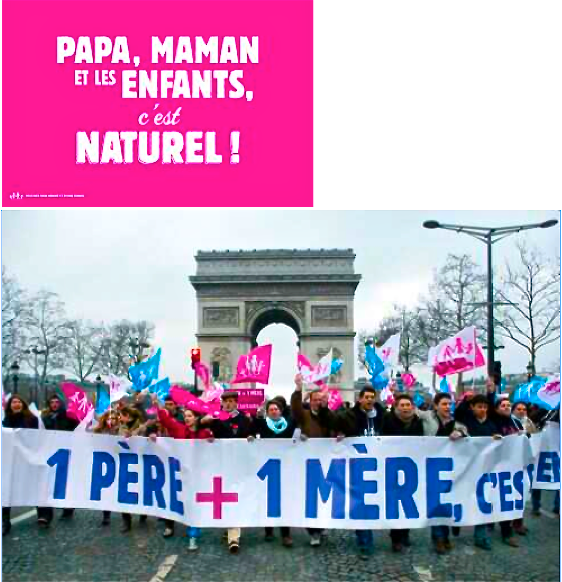 2. They had a very easy to remember, non-religious slogan to reach all people across the board: “1 Father, 1 Mother = That’s Marriage”, “Father, Mother, Children, It’s Natural!” and also “La Manif Pour Tous which means The Demonstration for All” and this is a play on words for the pro-gay marriage side whose slogan is “Marriage for All”.