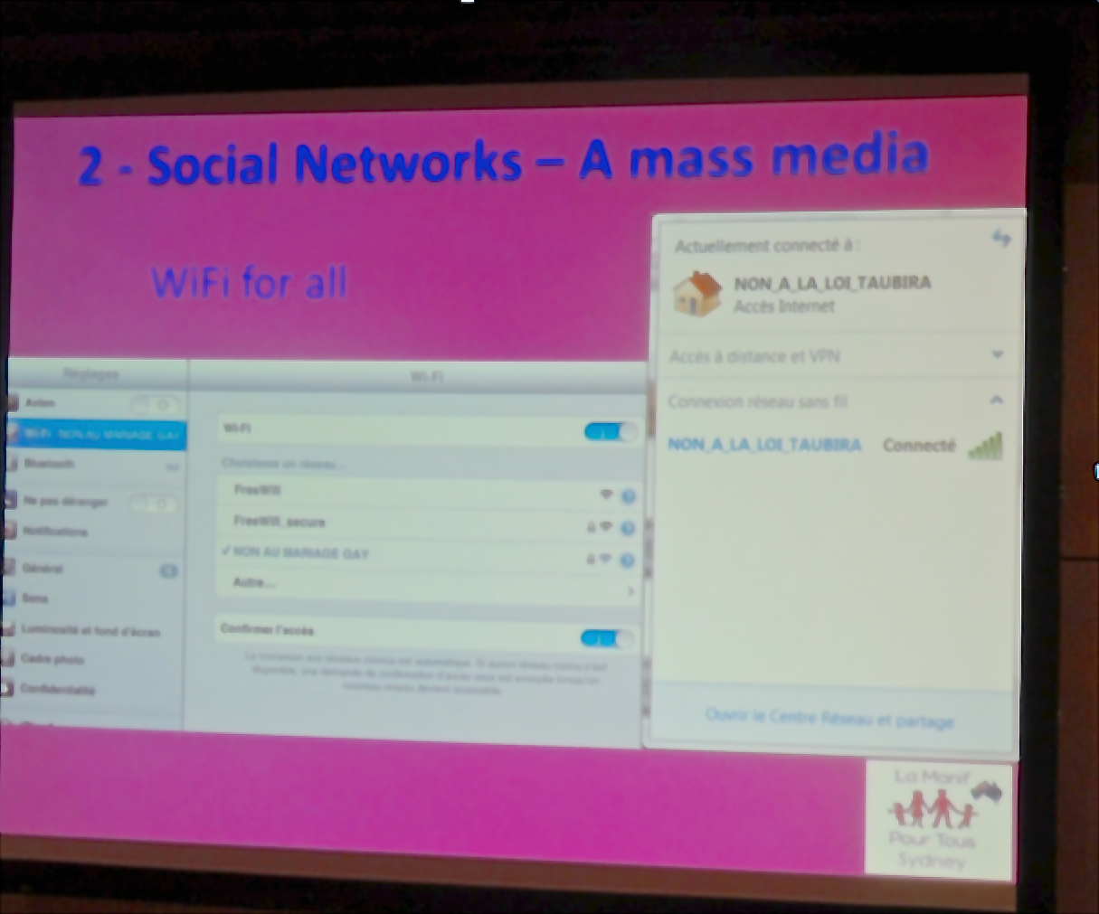 1. They used creative ways to engage people. For instance, one movement included encouraging everyone to change their Wifi name to “No Gay Marriage”. Whenever neighbors would be searching for Wifi access or logging into their system, anyone who made this change would show up. Maxime said he changed his one night and the next day his neighbors all changed theirs. It created an underground resistance movement.