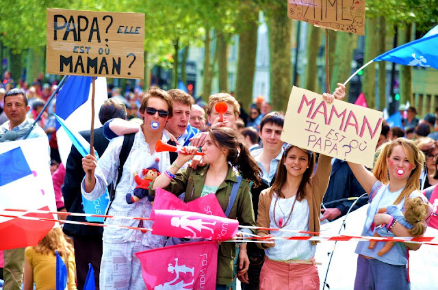 Why were these high school and university age youth the driving force for protesting gay marriage and gay adoption? The answer lies in the history of their parents. The May 1968 French “Sexual Revolution” created a generation of mass divorce, abortion, broken homes and families, euthanasia, drop in education and so forth. The young people of 2013 have experienced firsthand these negative social “freedoms” did to their families and home life. They were damaged by their parents’ and grandparents’ destructive social behaviors that they wanted to get rid of it. With the mass divorce, these children felt that they were the victims and needed to take action. They are taking a stand against the very things their parents fought for in the 1960’s.