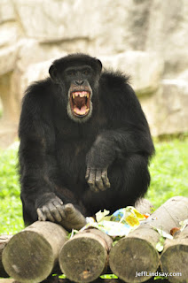 As a stranger and guest in China, I've tried very hard to not make a fuss and generally just quietly accept the way (or rather, the many ways) people do things here. I don't want to offend or ruffle feathers. Trying to be a good and humble visitor has meant biting my lip on many occasions. Today, though, I couldn't keep quiet and chewed out someone. Actually two different parties on two occasions for the same offense. And it felt great, though difficult and awkward. It felt and seemed like the right thing and I could see others were glad someone spoke up.We were at the Wild Animal Park in southern Shanghai, a large sprawling complex with wild animals you can view from a bus that goes into their territory. It also has more traditional zoo displays you walk around, along with numerous signs warning people not to feed the animals. While watching a large chimpanzee in his somewhat natural area, I was astonished to see that he was attempting to eat an aluminum can that someone had thrown to him. Then I noticed a pile of food packaging garbage in front of him, and lots of plastic bottles on the grass and in the water of the moat around his area. Then, to my shock, I saw another bottle go flying over the moat into the grass near the chimp. I looked over at the young man, maybe 22 years old, who had thrown it, and sensed that he was getting ready to throw more. At this point, I dropped my "ambassador of niceness" pose and spoke out.