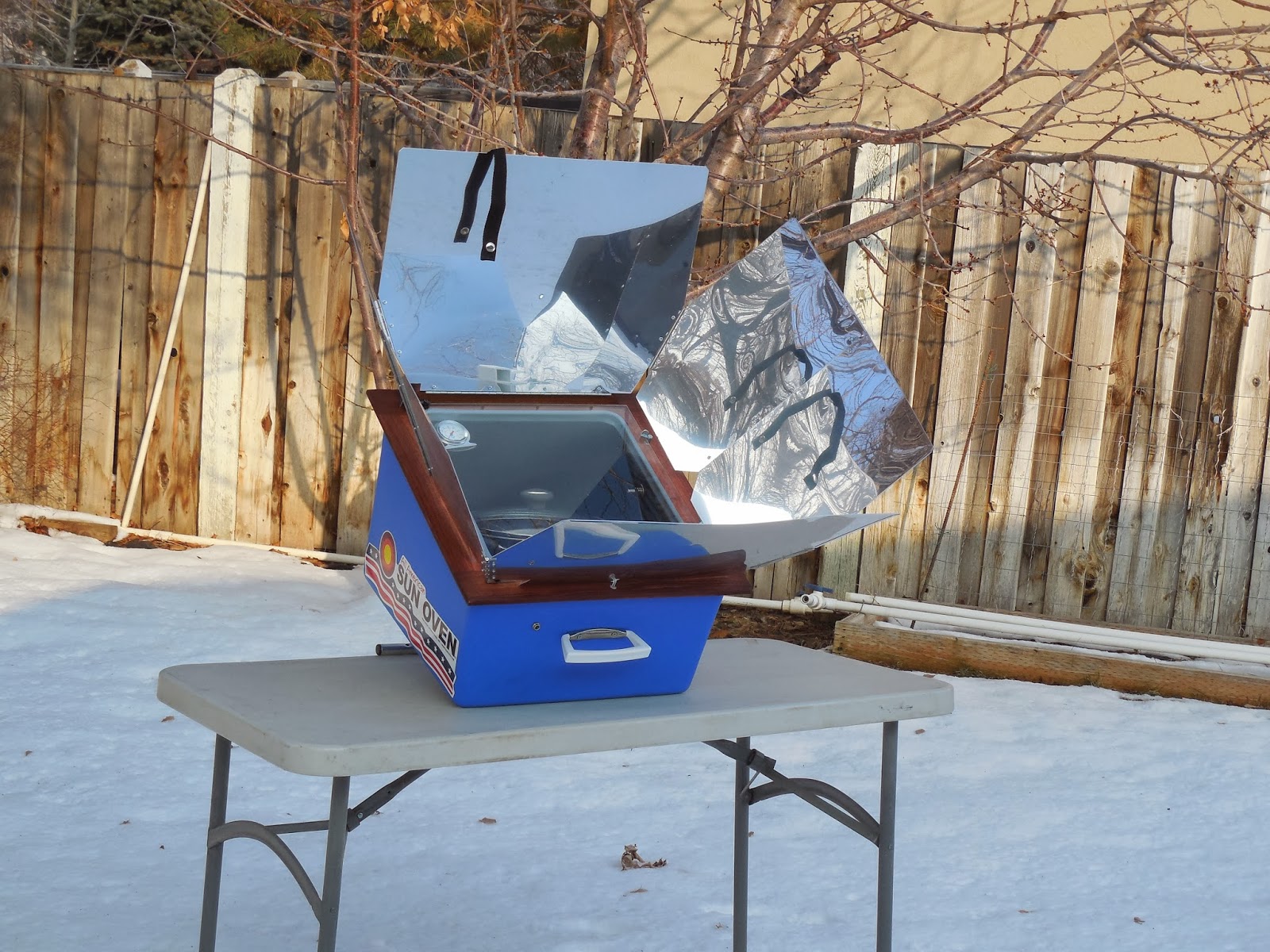 Winter desolation.....in my backyard. It's a cold Winter morning. Of course I would be the one to try something new with the snow and cold outside....who else? I knew the sun would be changing soon, so I decided to try my Sun Oven in this cold weather.