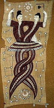 Ancient Chinese silk showing Nüwa holding a compass and Fuxi holding a square, symbols of order and creation far older than modern Masonry. From the Chinese Wikipedia entry for Nüwa. See the discussion of related figures in Yinyang by Robin Wang (Cambridge, UK: Cambridge Univ Press, 2012), pp. 101-103.