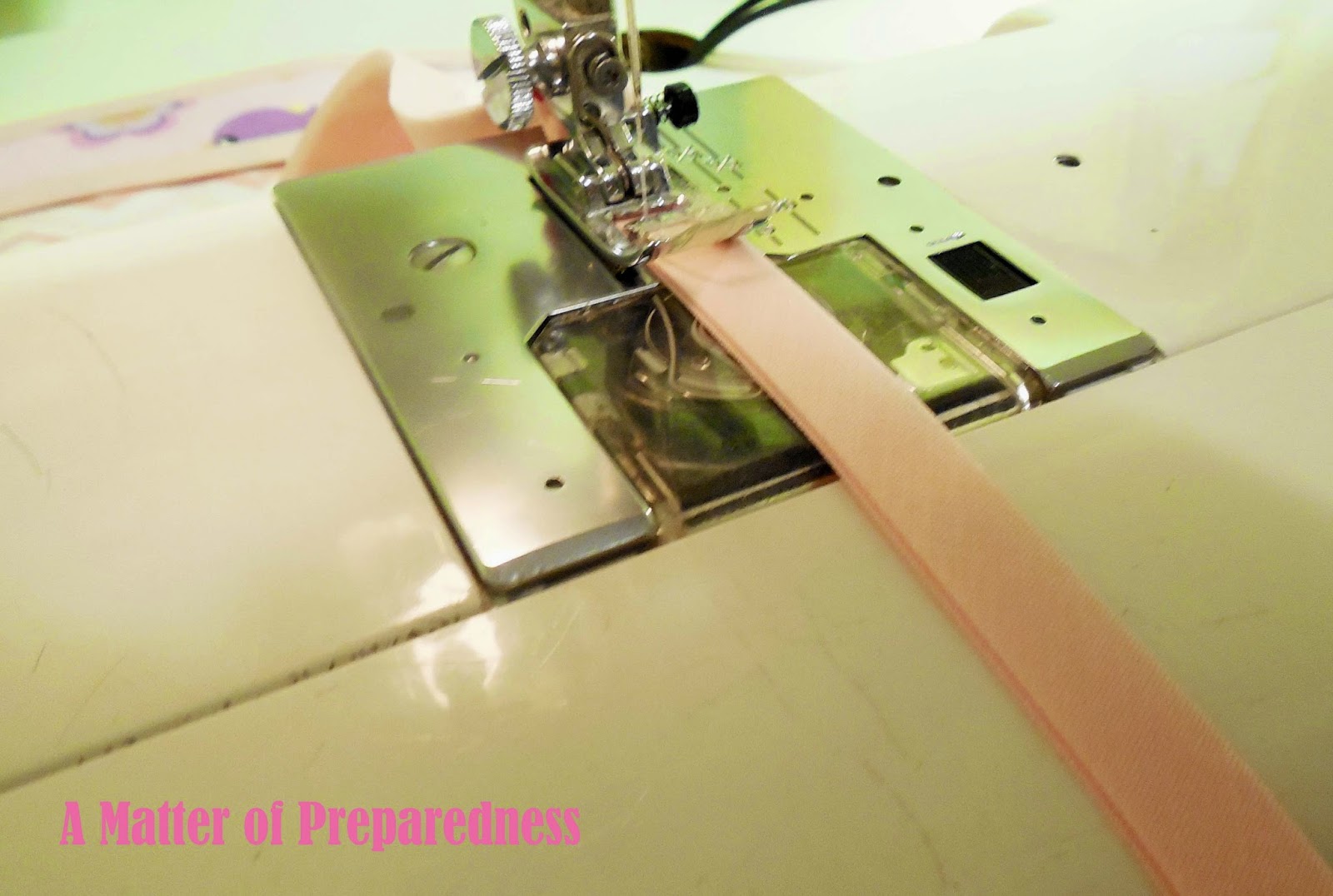 Now, you will sew a very large piece of Bias Tape around the perimeter.