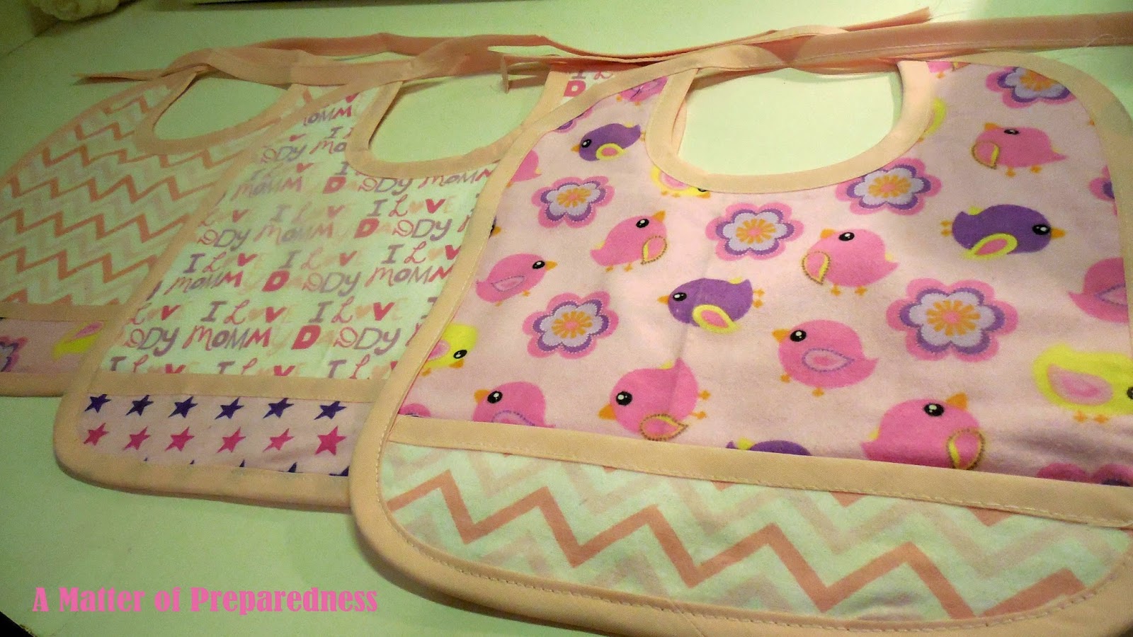 Our Daughter-in-Law requested some 'hand made' items for this little one, so my Daughter and I got busy and had some great fun together. These sweet Bibs were some of the things that I made for my future Granddaughter. Not only were they fun, but also were very doable.