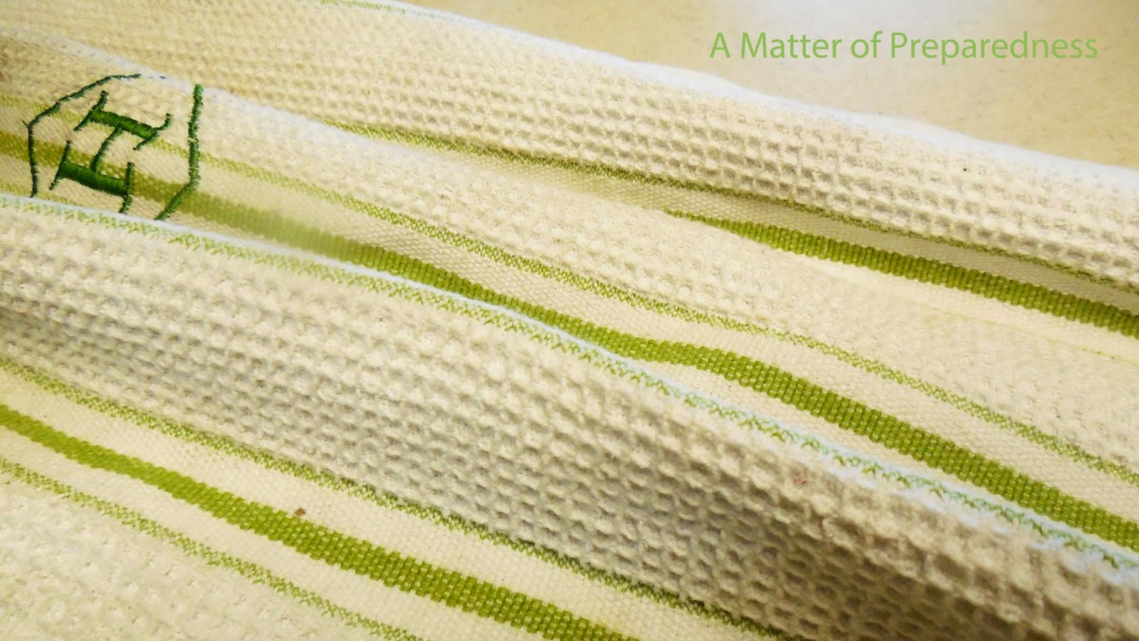 You will need a dishtowel that you place on your counter. I gathered it lengthwise with my fingers and leave it on the counter with the long gathers.