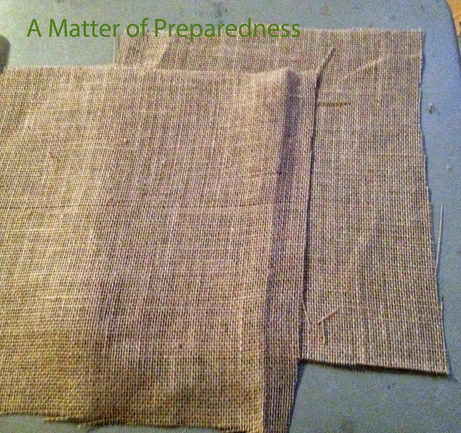 I cut a piece of burlap that was 14 x 20 inches. I then sewed the twill tape around the 2 long sides and one short side of this piece. This will serve as the top of the cube.