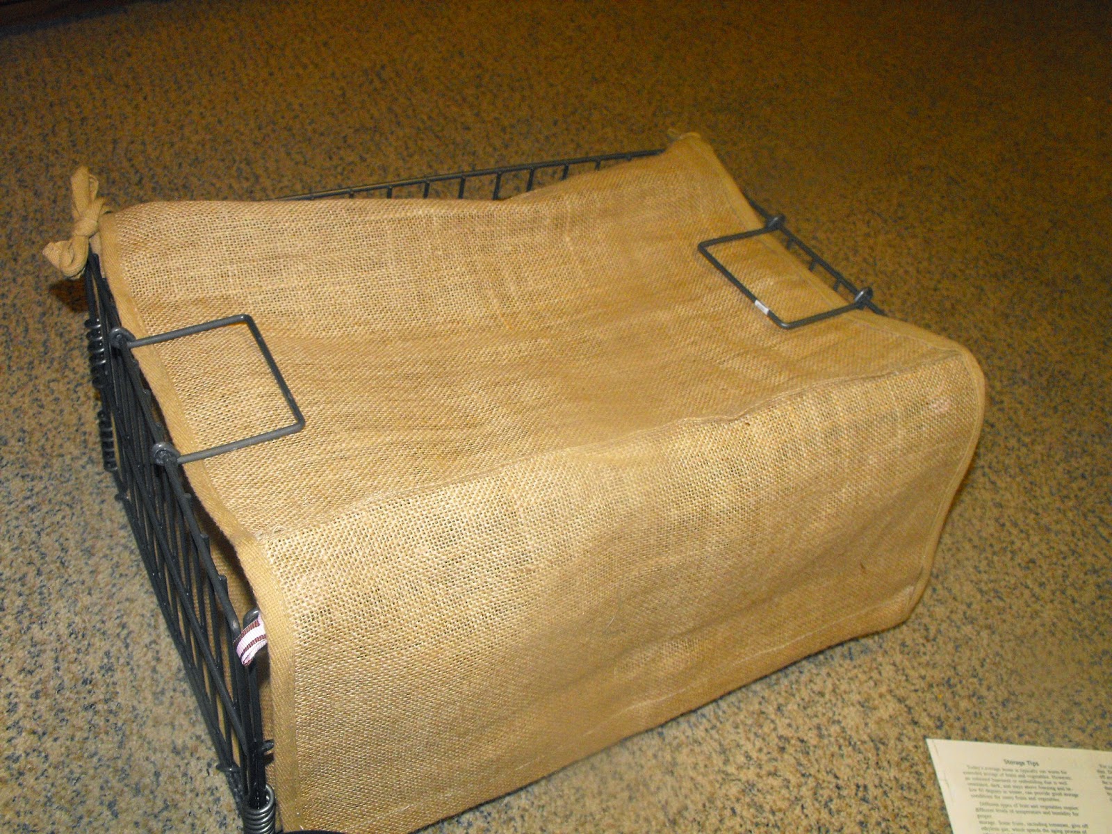 I inserted the burlap liner into the Milk Crate. Notice how I folded the liner over the top of the crate by a couple of inches. This keeps the liner from collapsing on itself.
