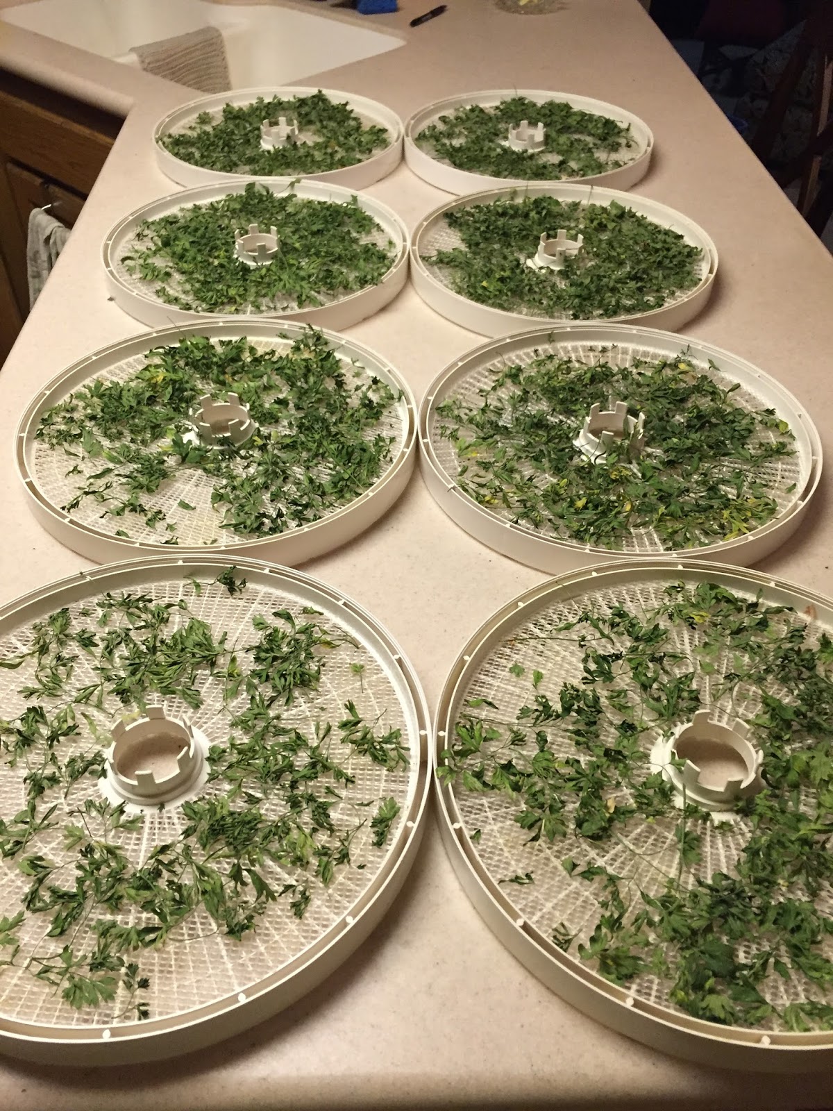 Remember that full tray of Parsley above? This is what it looked like after it was dehydrated.