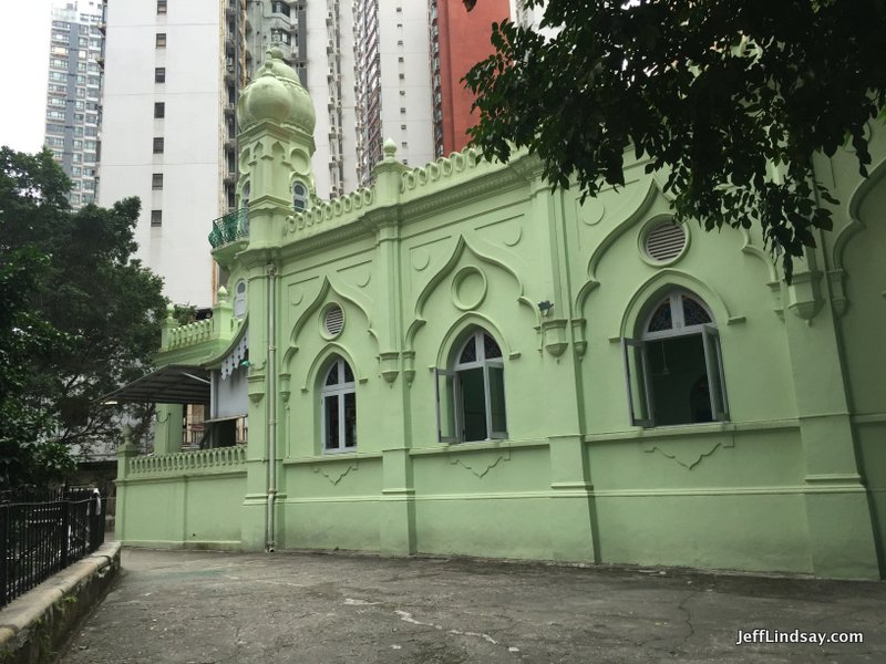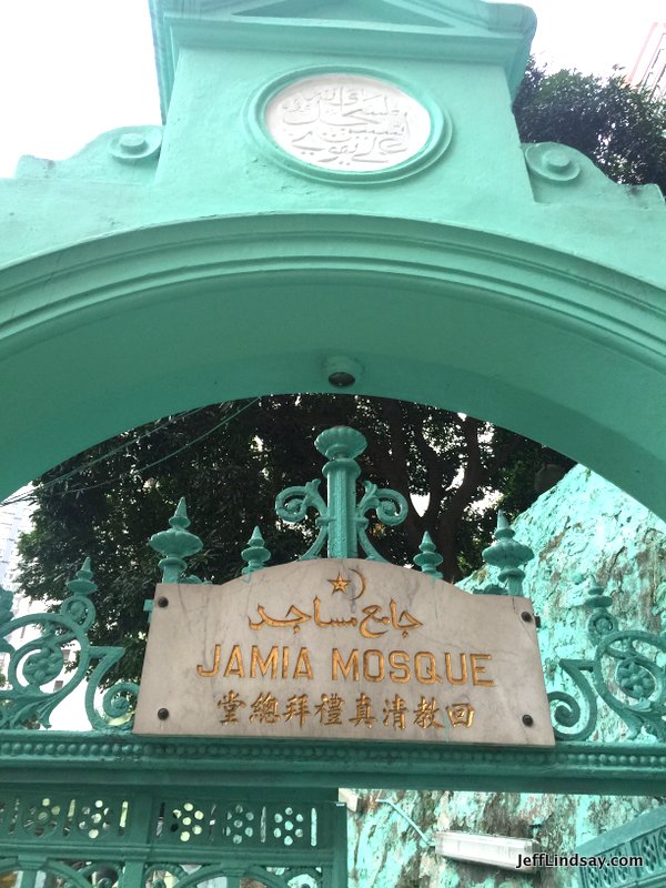 On Christmas day, I visited the Jamia Mosque in Hong Kong, and it was a highlight of our day. It was my youngest son's idea. It began with his desire to try the world's longest outdoor escalator system in the Mid-Levels section of Hong Kong, where many consecutive escalators allow you to scale a steep section of town that is loaded with interesting restaurants and shops. Along the way up, he saw a mosque and suggested we visit. All of us were interested and hoped to learn a little more about an important world faith, so off we went.