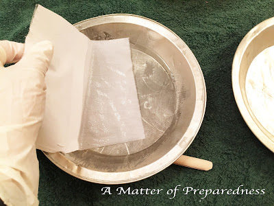 Once the squares are dry, press them flat, then press them onto Freezer Paper. Now, here is a quick trick that I learned. I used my paper cutter and cut several sheets of Freezer paper to an 8 x 11 inch size. I found that I could re-use each sheet of Freezer paper over and over.