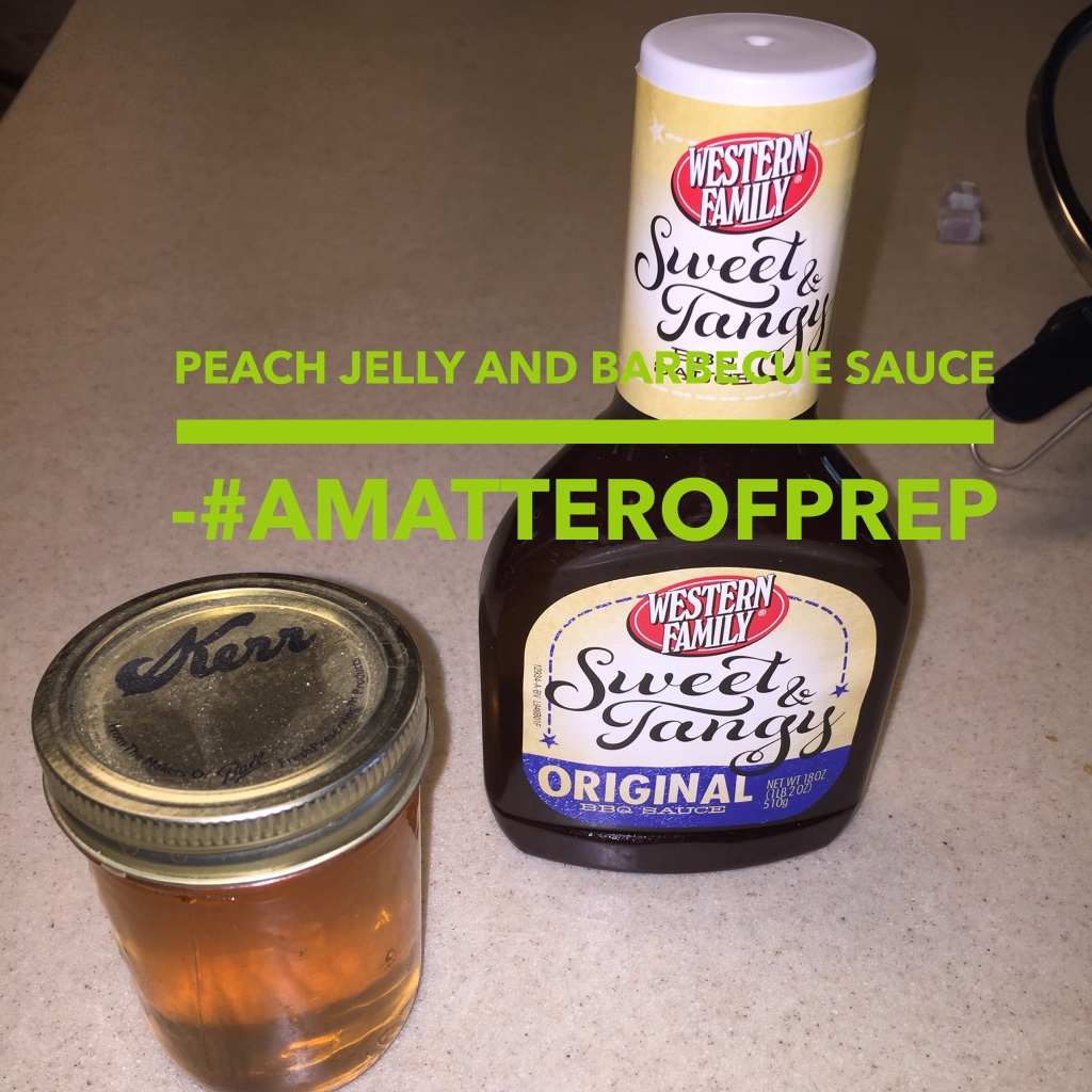 I pulled out a half-pint of Peach Jelly and Barbecue sauce from my Food Storage room.