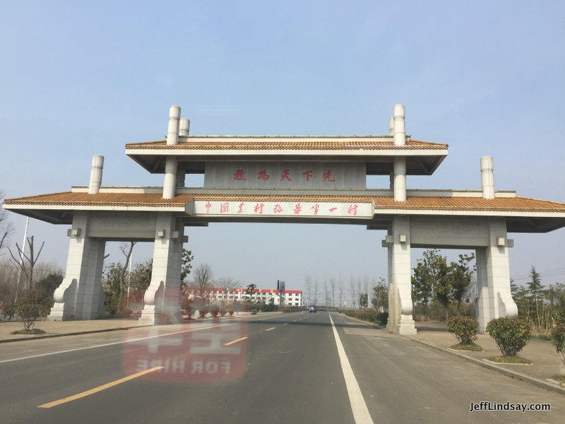 Getting there wasn't too difficult from Shanghai. It required two or so hours in a high-speed train, often reaching 300 km/hr, to reach Bengbu, and then about an hour in a taxi to reach the village. The town is pretty much just one side road on the main highway. But it has a big arch as you enter, and then a giant tourist center, and then you find that the tourist center is not about the historical event that should make this town famous, but about its current geography, agriculture, climate, etc. Not what IO came for, but nice to have, I suppose.