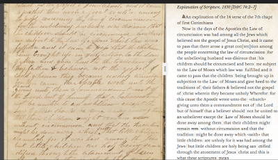 Some of the insertions and occasional punctuation may have been added later. When it is in a different medium that the text (e.g., a graphite pencil), it is likely added later. I believe the transcript seeks to show the text as prepared originally by the scribe, not showing clearly later additions. In the transcript, there is essentially no punctuation nor can I find any corrections that would represent Joseph changing his mind or misspeaking. There are some that look like Williams missed a word or started repeating a word he had just written, catching himself right away. We have similar results in the transcripts for the following pages from Williams, including p. 118, p. 119, and p. 120, where those closing lines have punctuation added to prepare for publication, but apparently no punctuation written by Williams acting as scribe. So I would suggest that Vogel hasn't done enough homework to support his contention that punctuation tells us nothing. And in any case, he's completely overlooked what I feel is an especially telling indicator: contemporaneous correction. There's a lot it in the twin Book of Abraham manuscripts, along with a lot of punctuation, erratic as it may be, giving these documents a different nature than the confident dictation of Joseph Smith in revelatory mode.