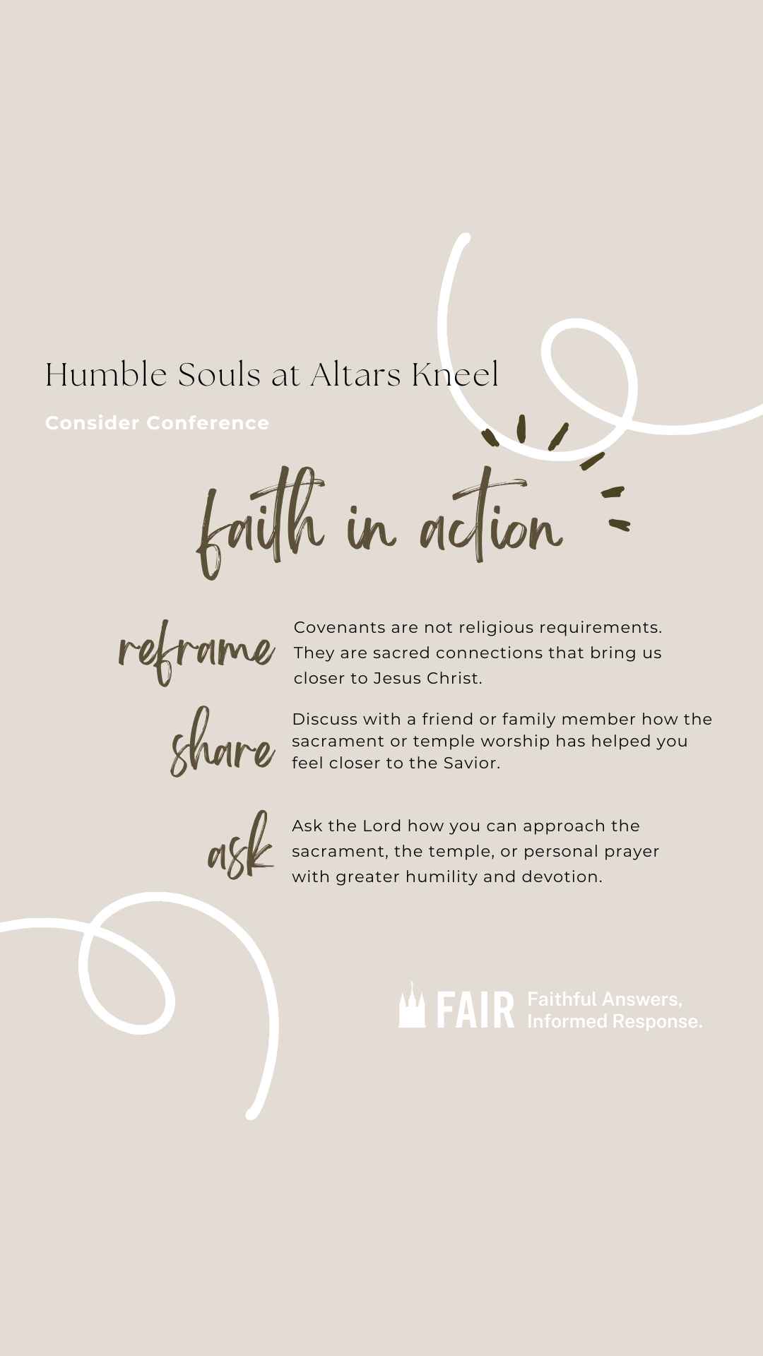 The Consider Conference series by FAIR offers an in-depth look at recent General Conference talks to help members of the Church of Jesus Christ of Latter-day Saints navigate common questions, misunderstandings, and criticisms. Each post provides doctrinal insights, historical context, and practical ways to apply gospel principles in everyday conversations. Through this series, we hope to equip readers with faith-promoting resources that encourage thoughtful reflection, respectful dialogue, and a stronger foundation in gospel truths, fostering both personal conviction and meaningful discussions with others.