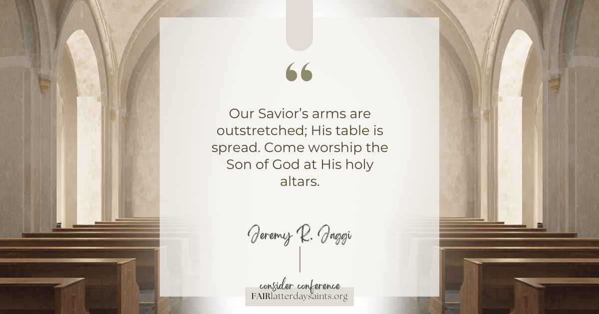 In his October 2025 General Conference address, “Humble Souls at Altars Kneel,” Jeremy R. Jaggi teaches that sacred altars, whether the sacrament table, temple altars, or the quiet places of personal prayer, represent moments when we bind ourselves to Jesus Christ through covenant devotion.